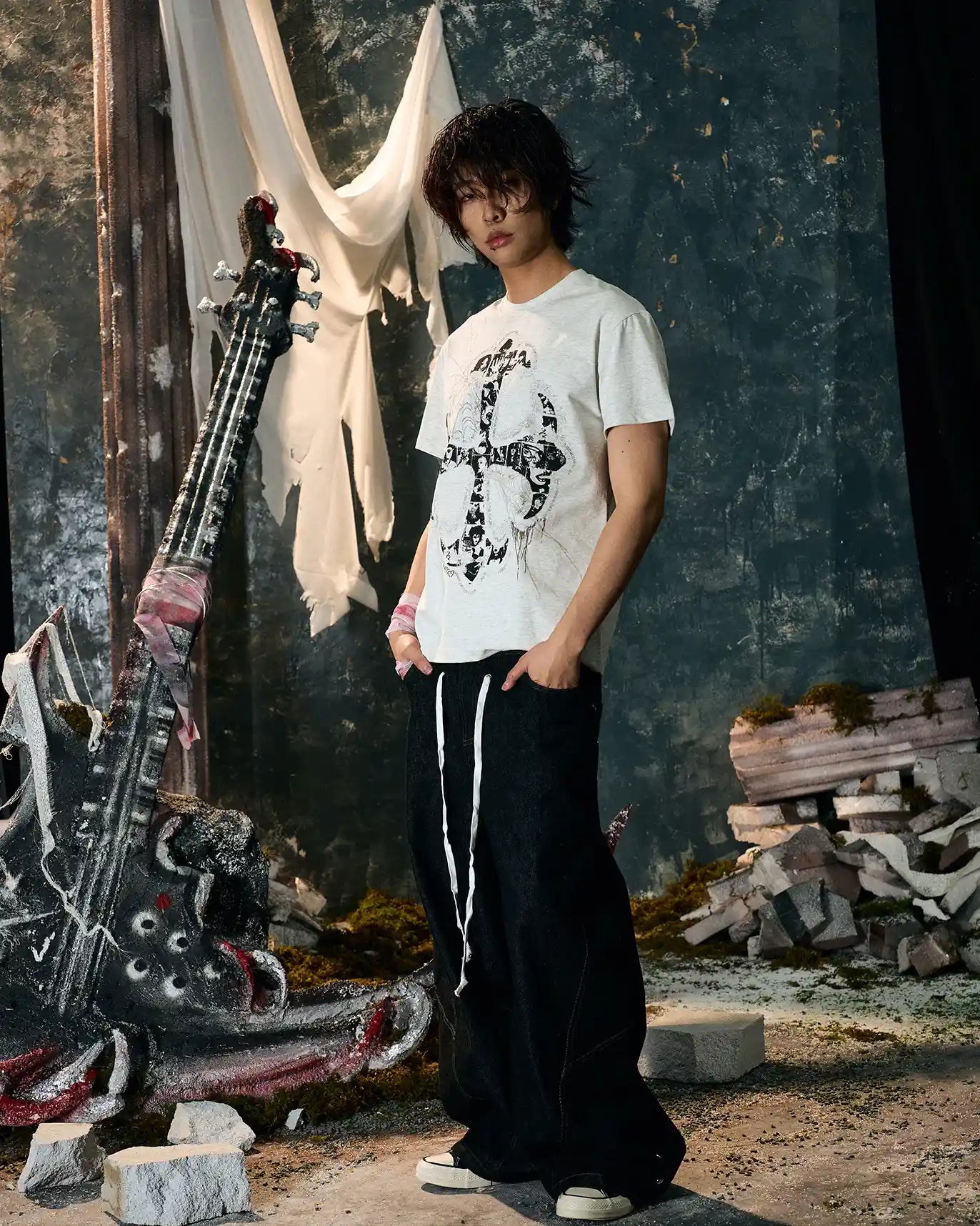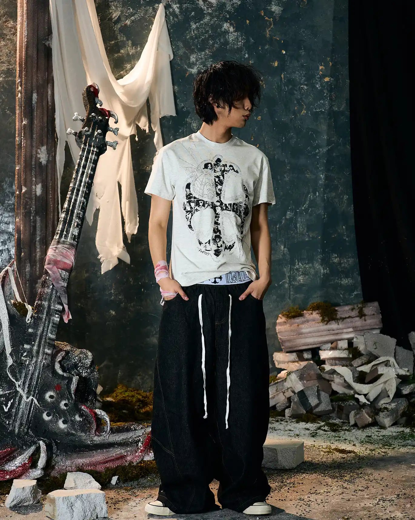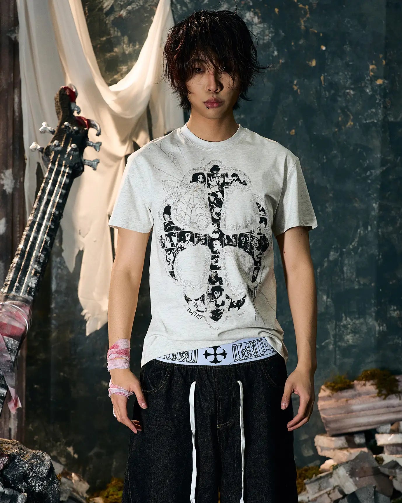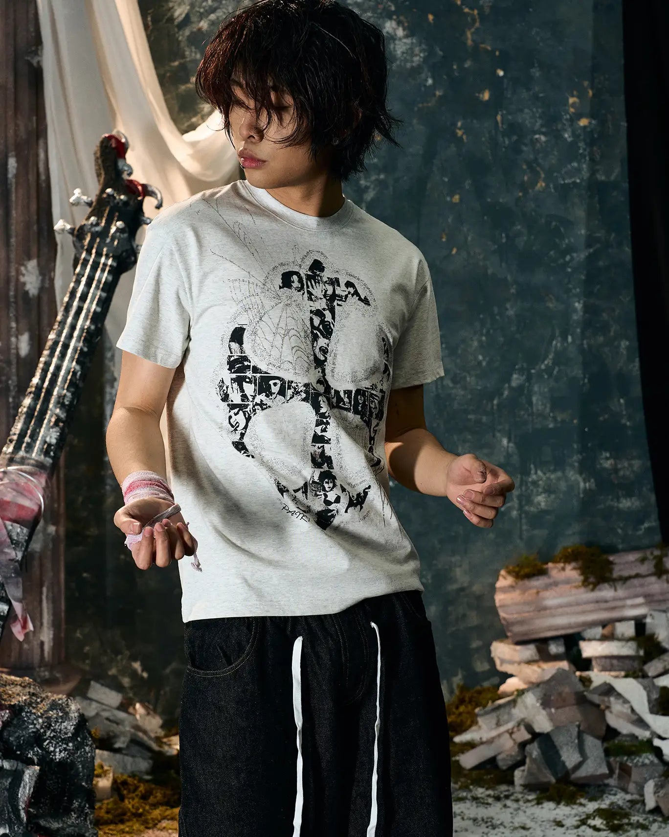 This t-shirt reimagines the traditional cross by integrating multiple human faces within its structure. Each face represents a unique narrative, weaving together themes of identity, faith, and the human experience.