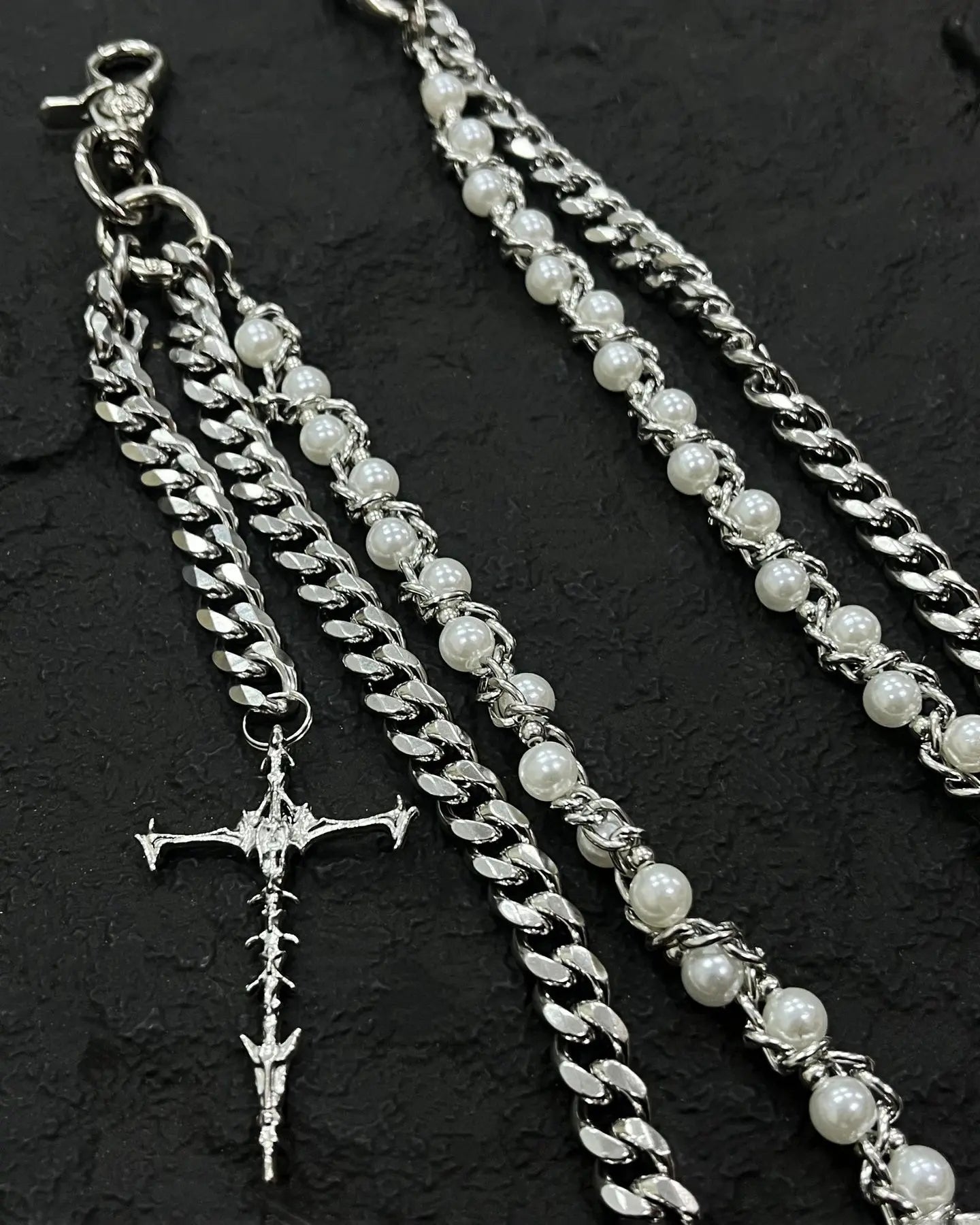• As the city lights flicker and the night unfolds, the Midnight Glam Chain becomes your ultimate accessory. Crafted with lustrous metal and adorned with shimmering pearls, this chain mirrors the stars in the night sky, adding a touch of celestial elegance to your ensemble.