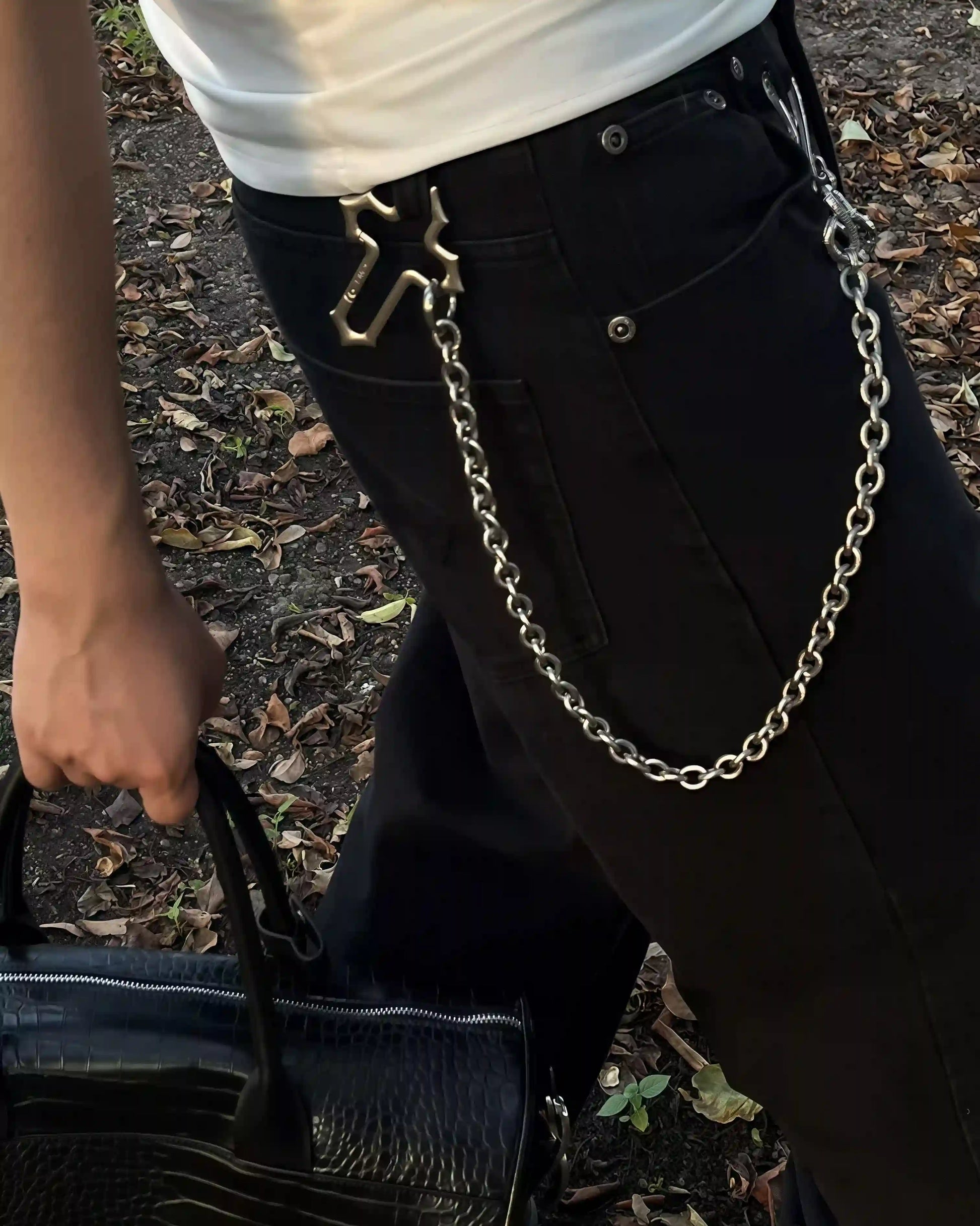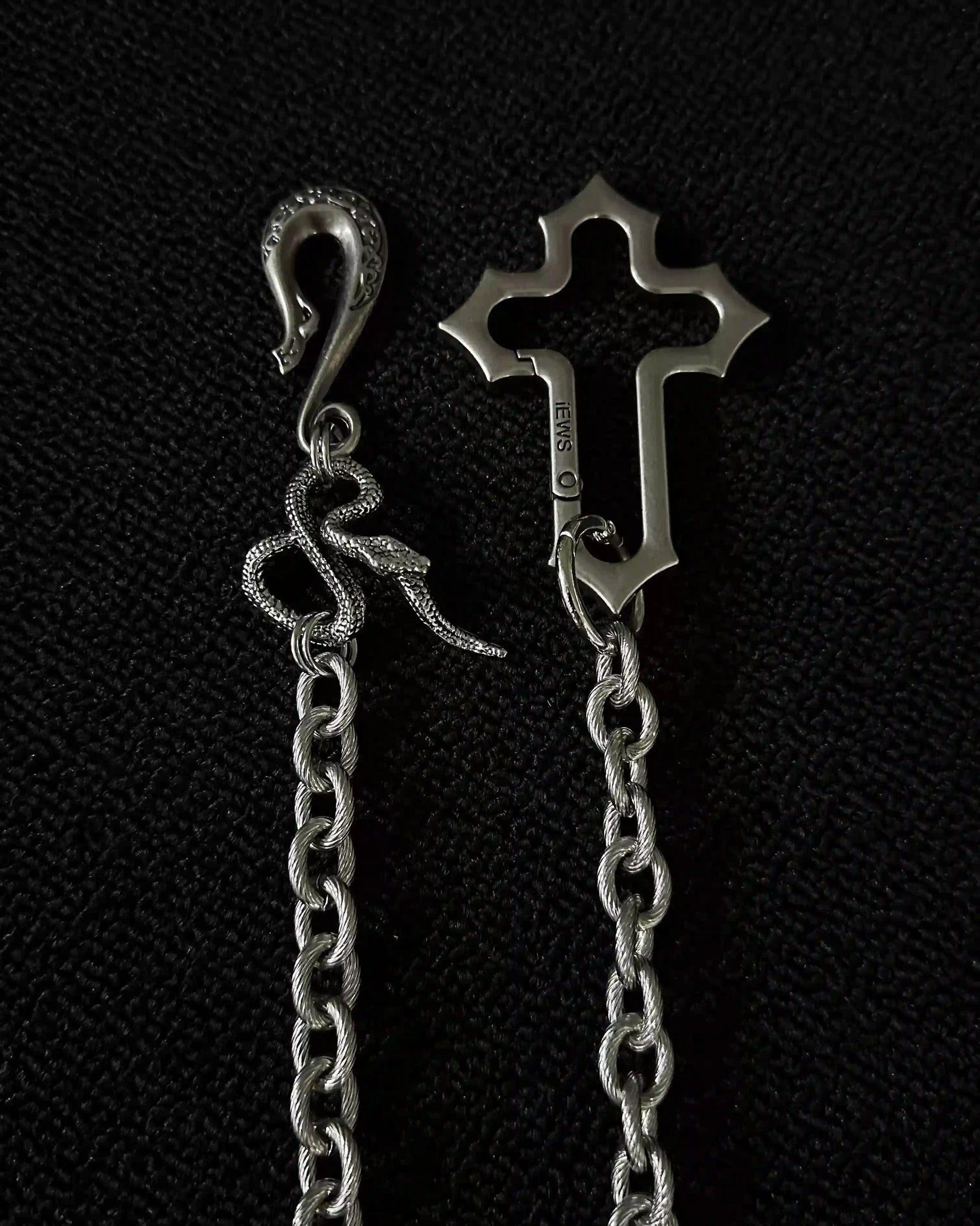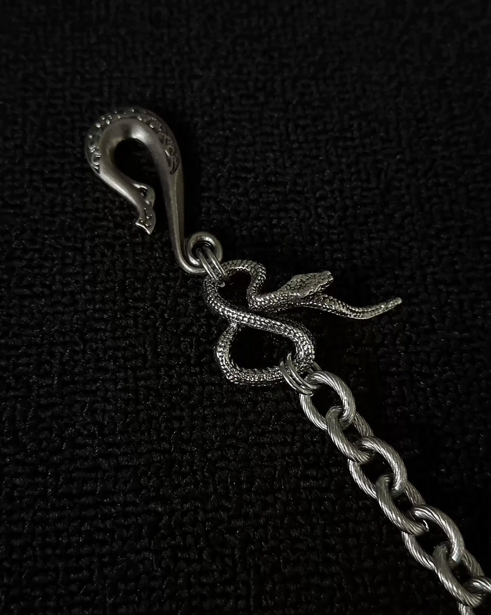 • This pants chain features a silver-tone cross and snake-shaped hook, capturing the essence of gothic aesthetics.
