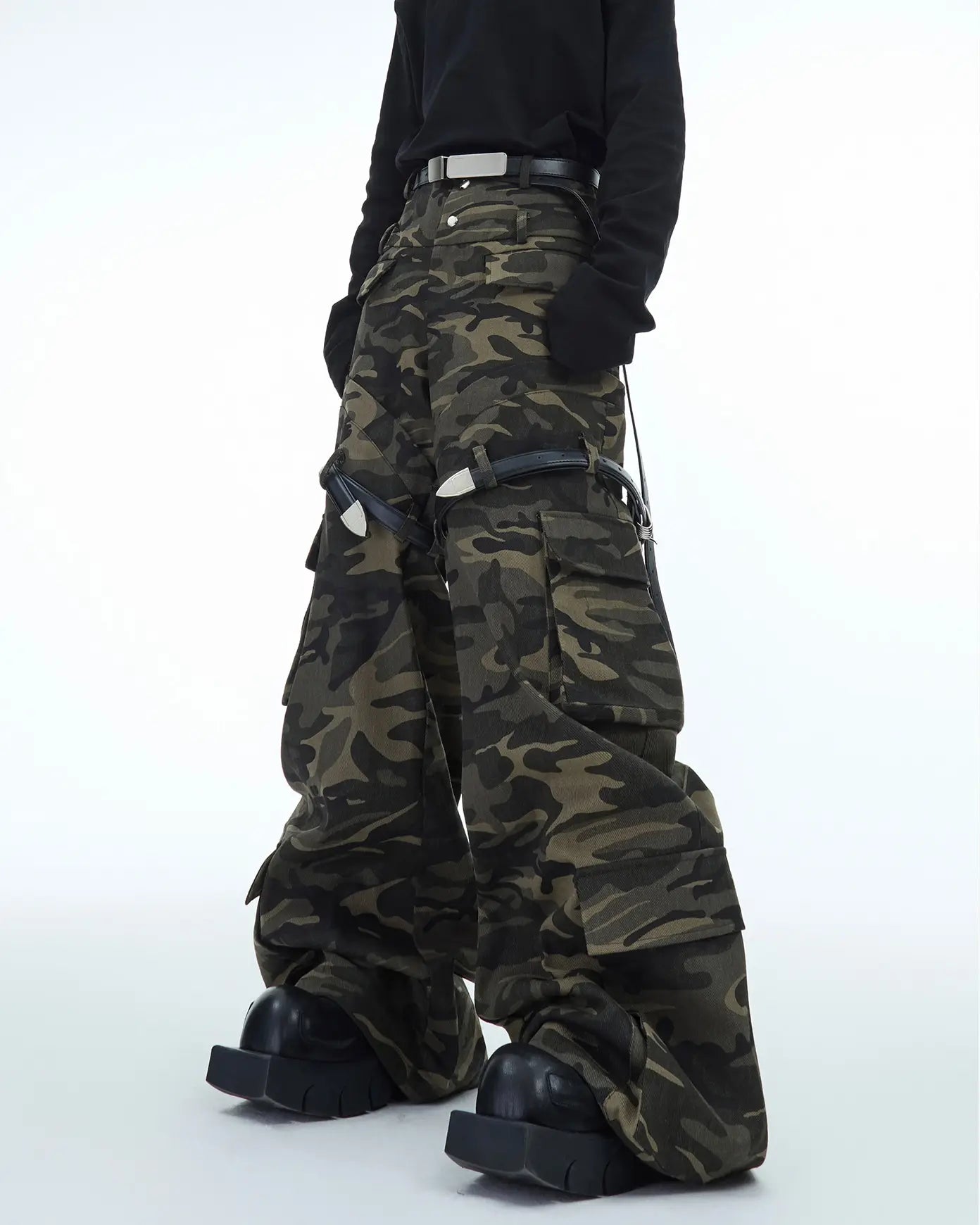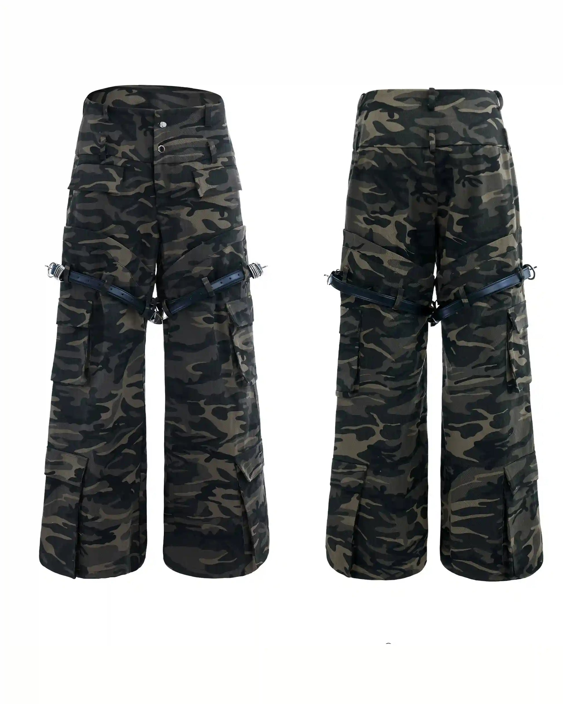 This camouflage pants blend military style with streetwear, showcasing courage and strength. The classic camo pattern embodies fearlessness, making a bold statement on the streets.