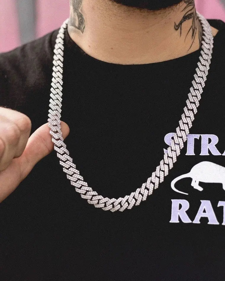 15mm diamond-cut Cuban link — a timeless classic. Bold lines fused with iced brilliance, an enduring icon of street luxury.