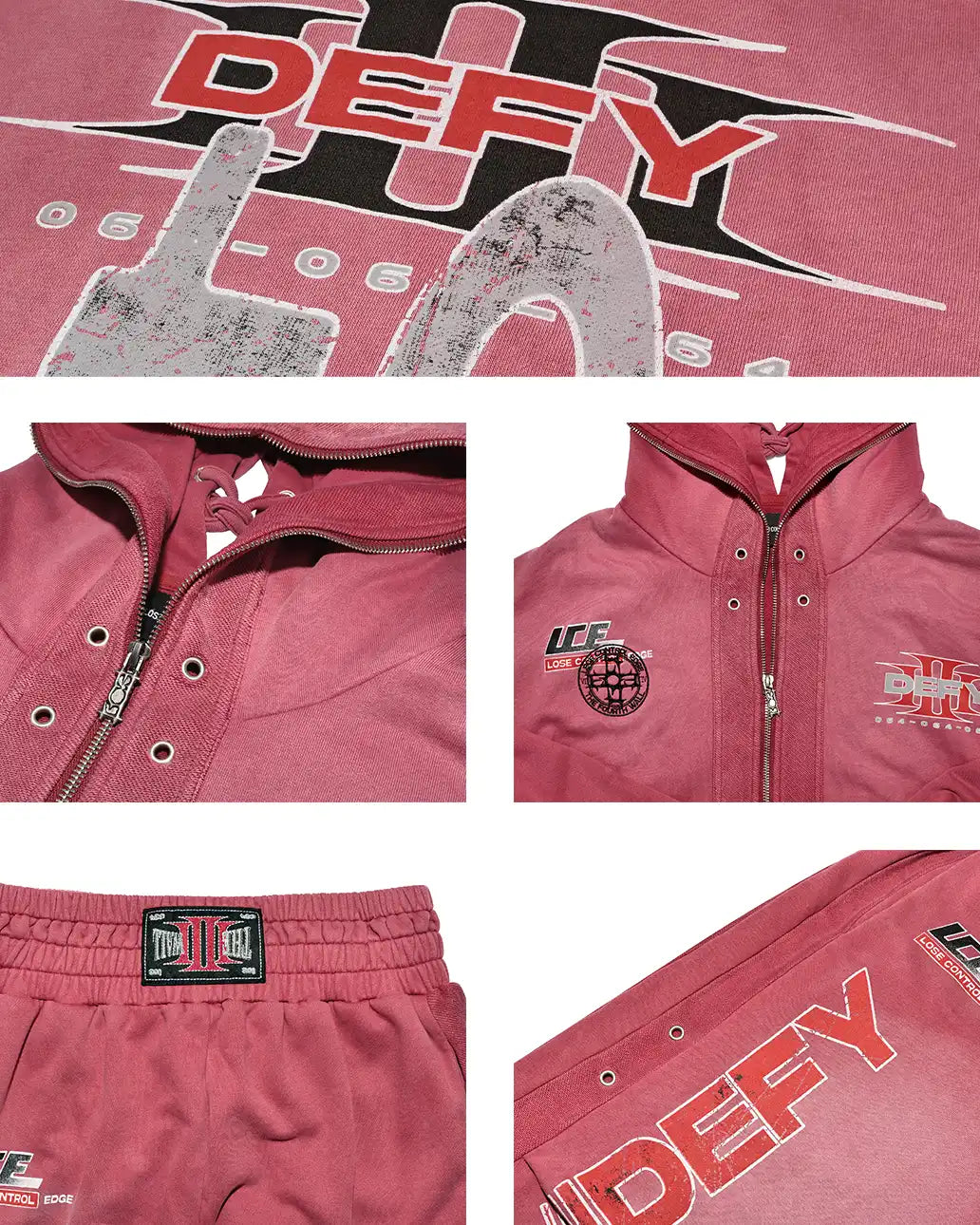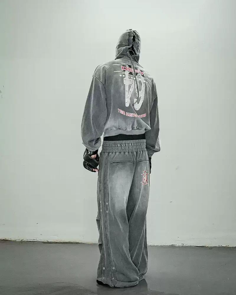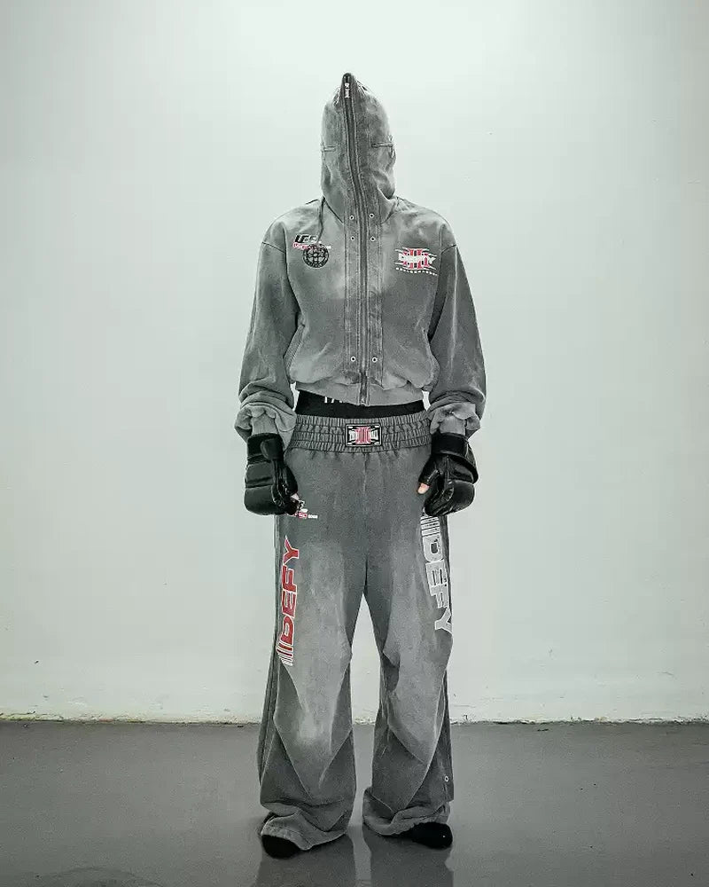 Fuses the raw power of boxing with streetwise attitude. Industrial grey tone, full-zip hood, oversized cut—transforming you into both fighter and trend-setter.