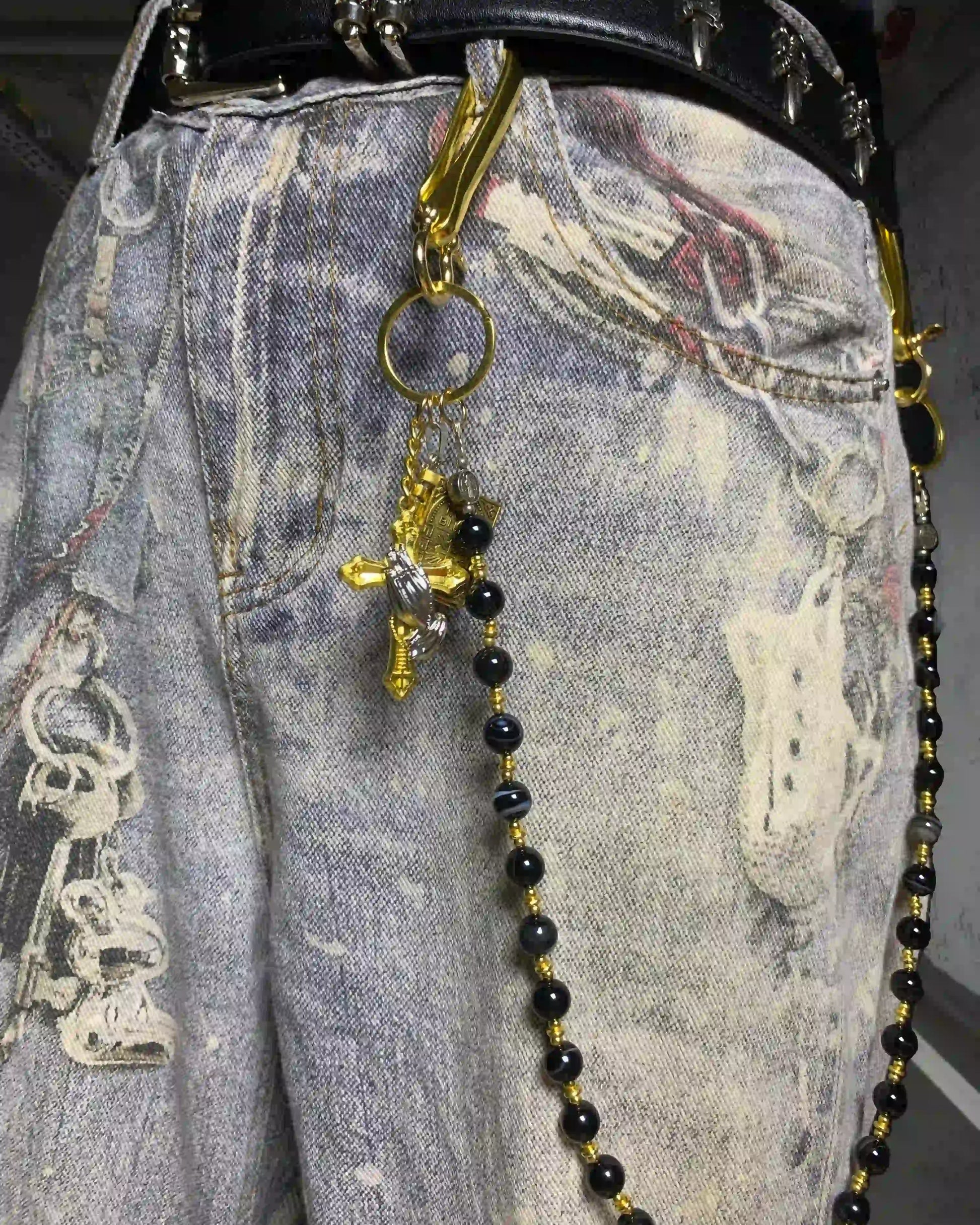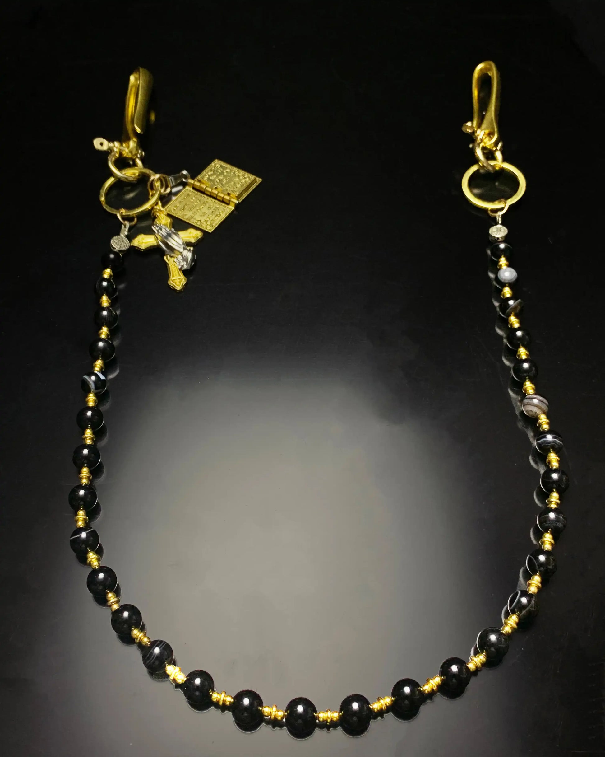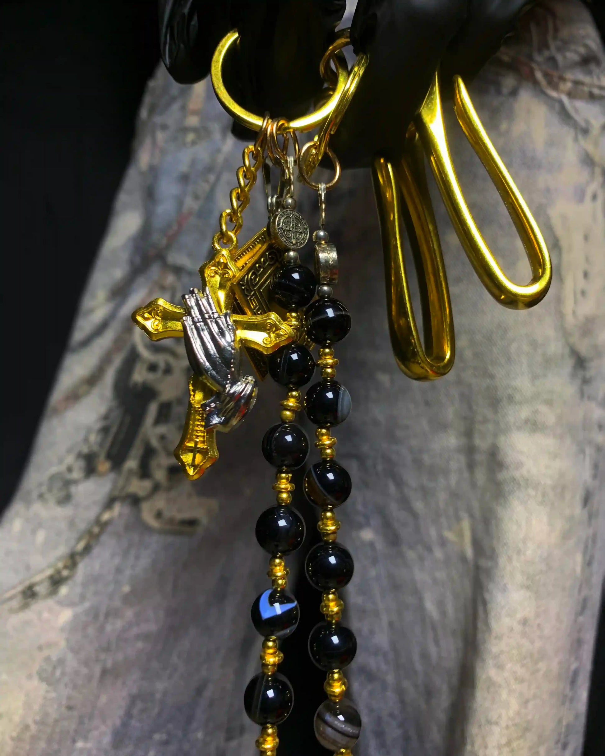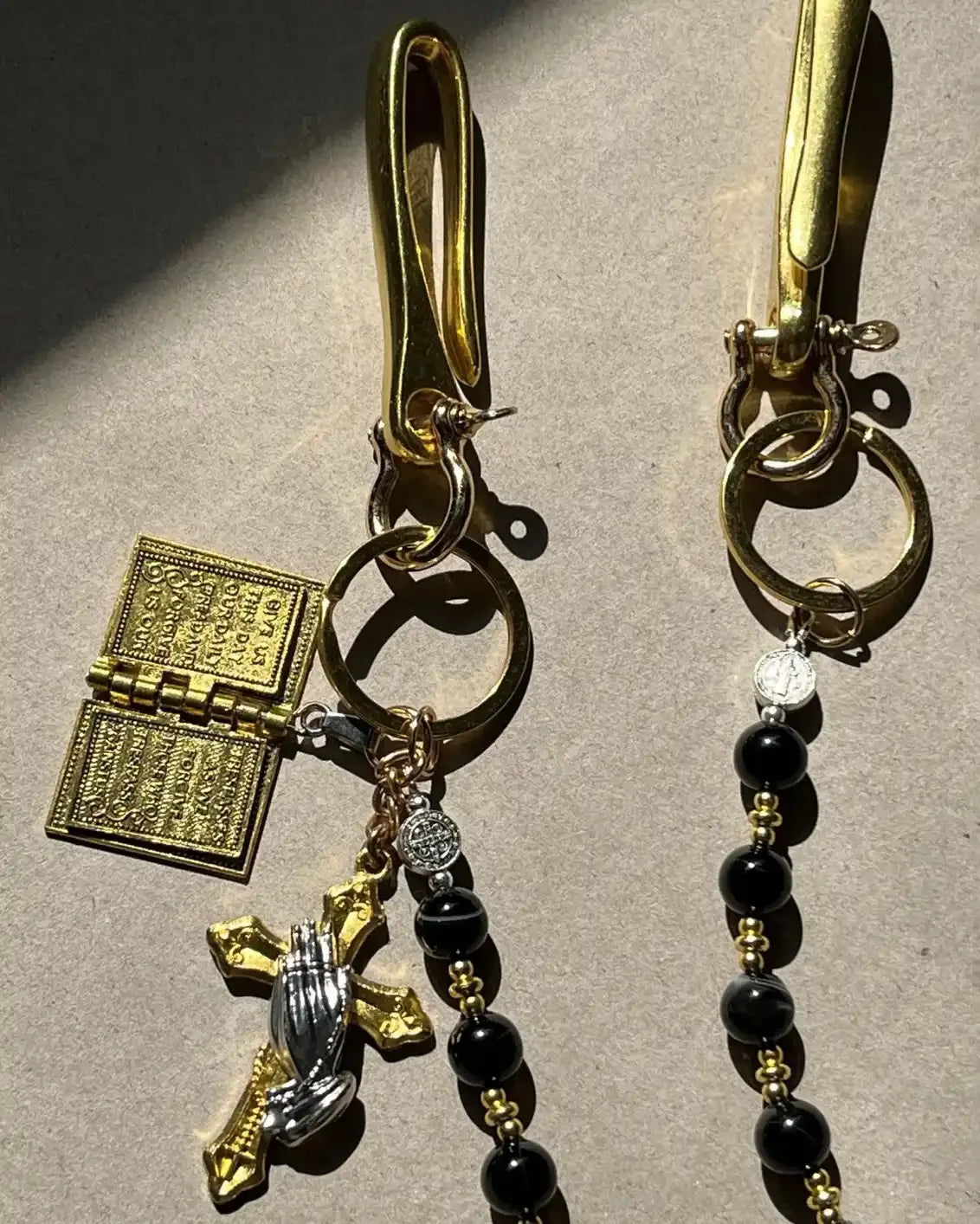 Golden chains. Blackened beads. Crosses and hands clash.