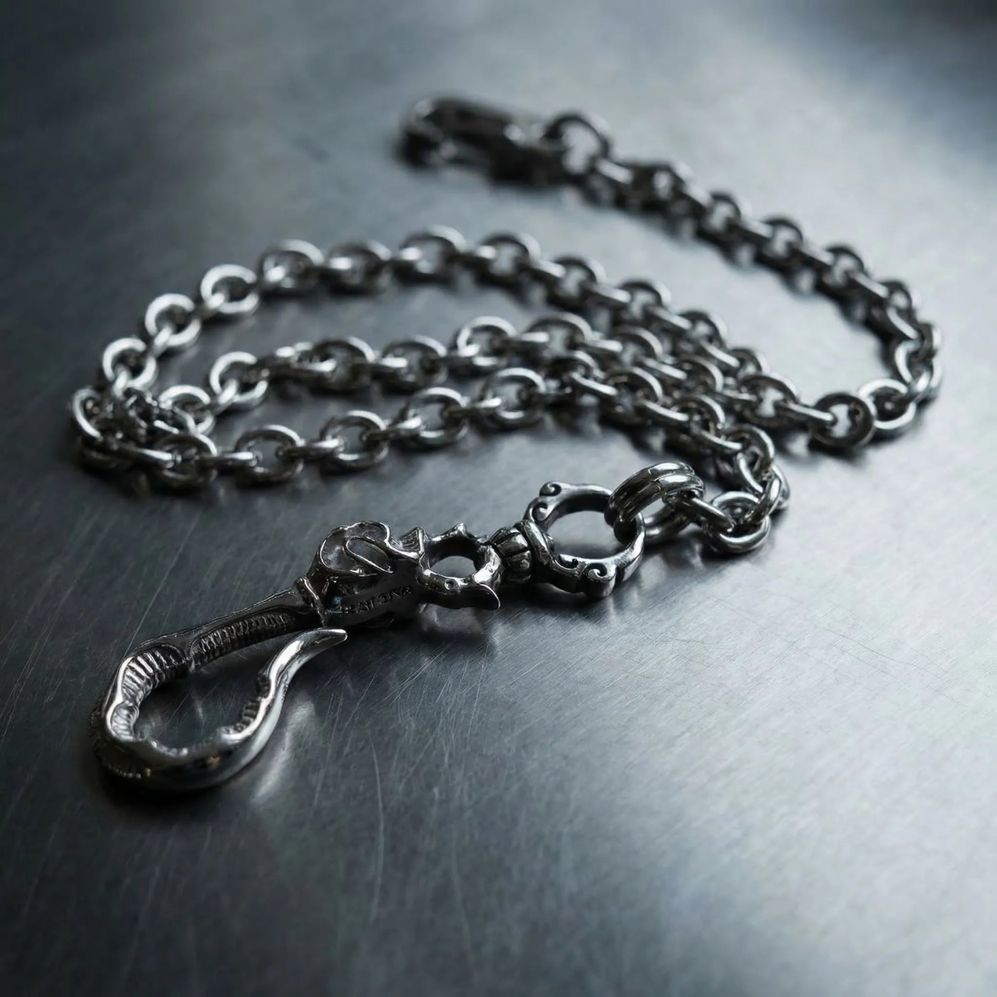 • Carved stainless steel rotating clasp ring, sturdy yet retaining a retro design feel.