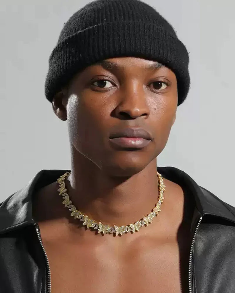 Butterflies flutter along the golden Cuban links, each wing shimmering with bold elegance.Where street luxury meets delicate grace — power and beauty in perfect flight.