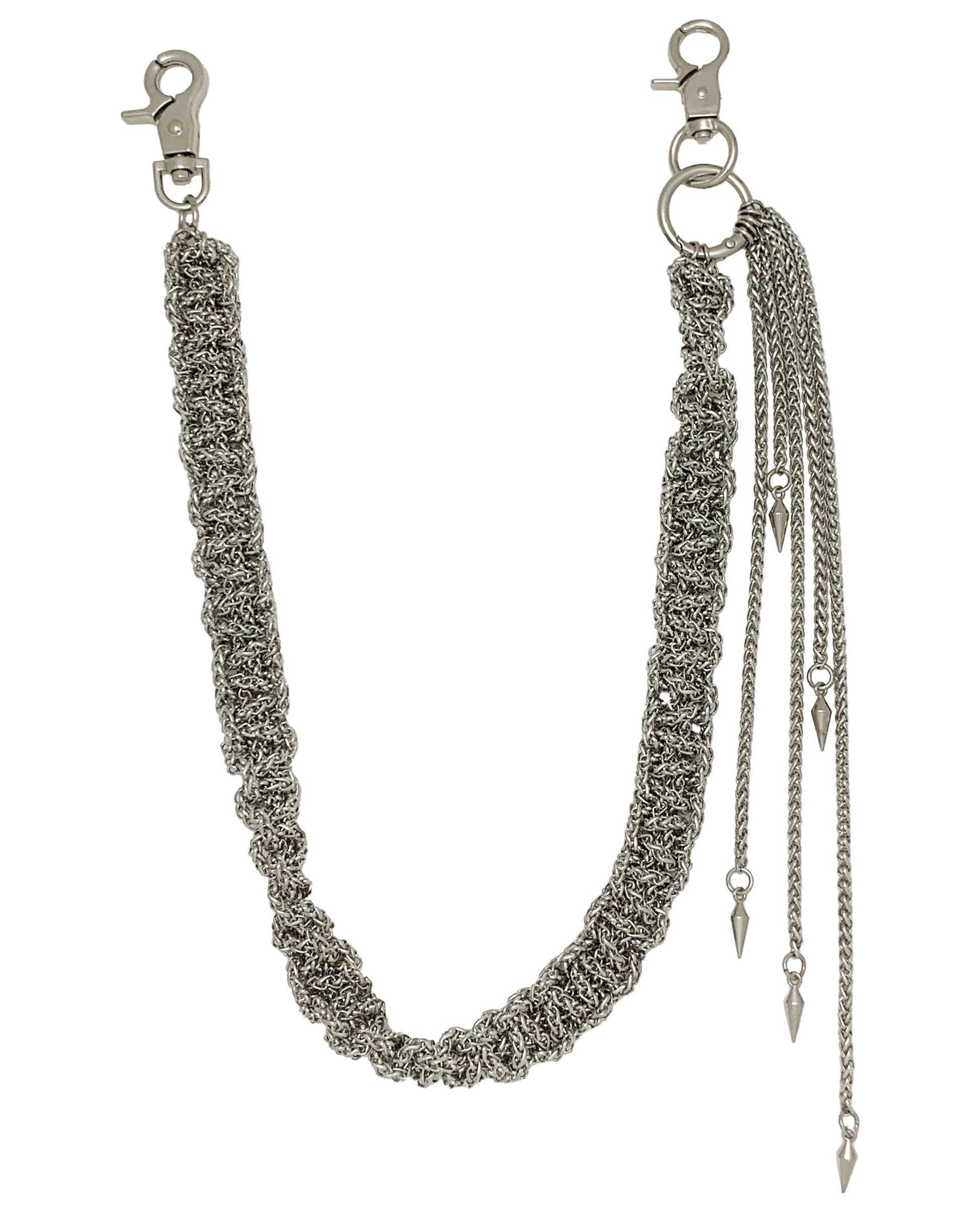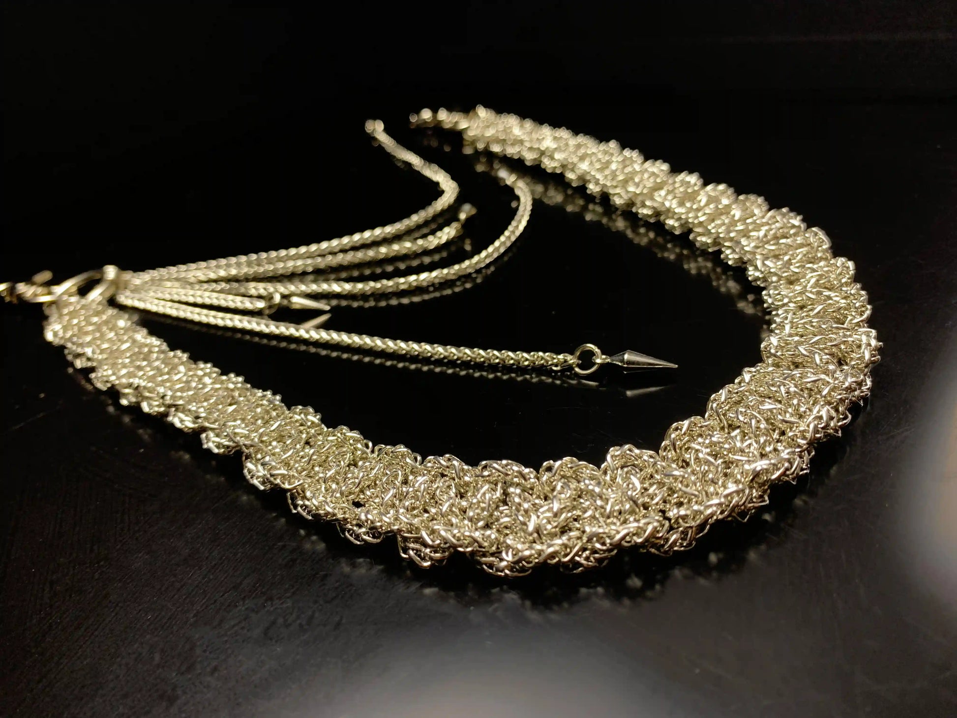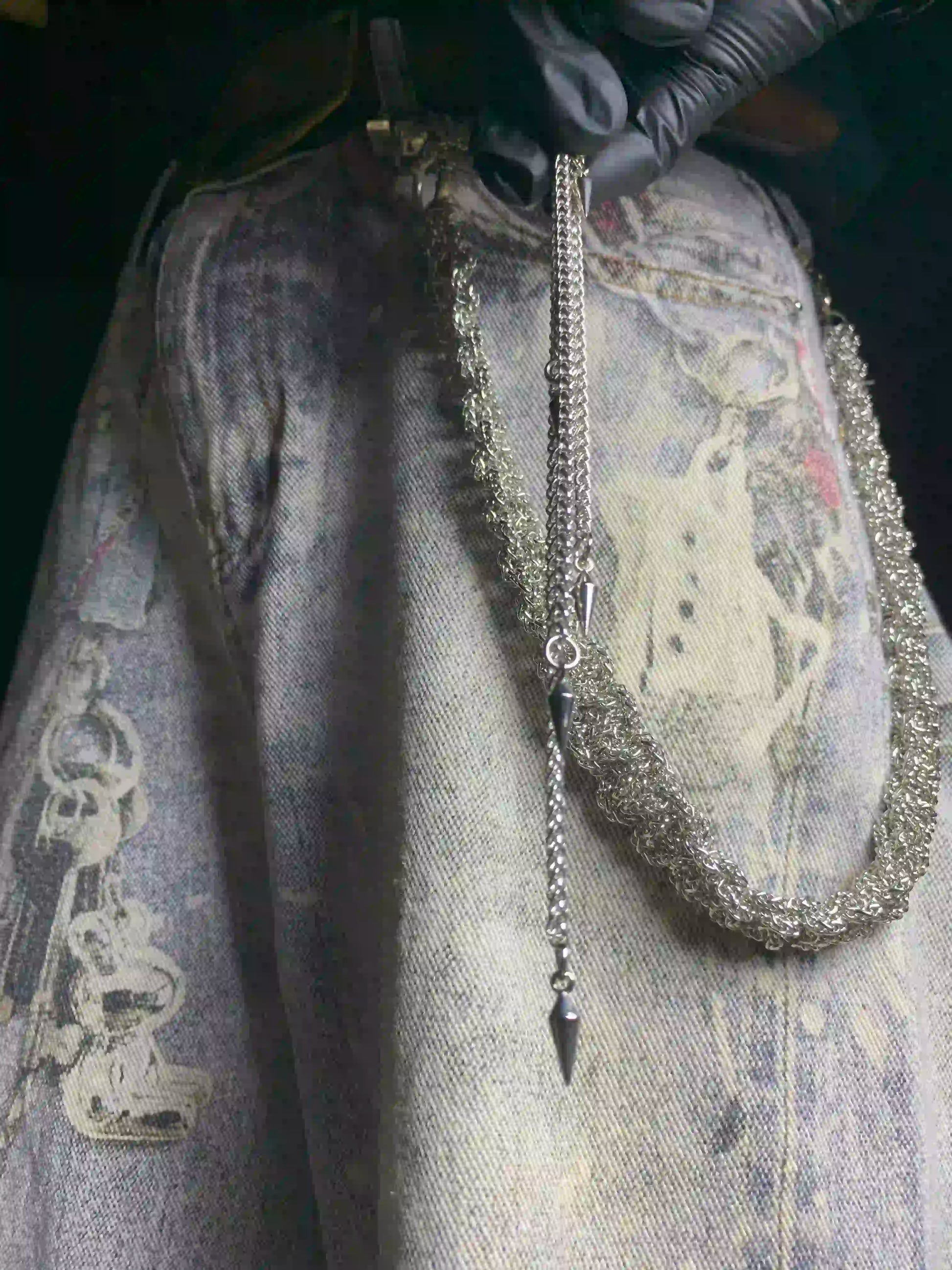 “Woven turns wild. No words. No light. Just braided metal hugs, tassel drips, and that raw night‑crawler pulse.