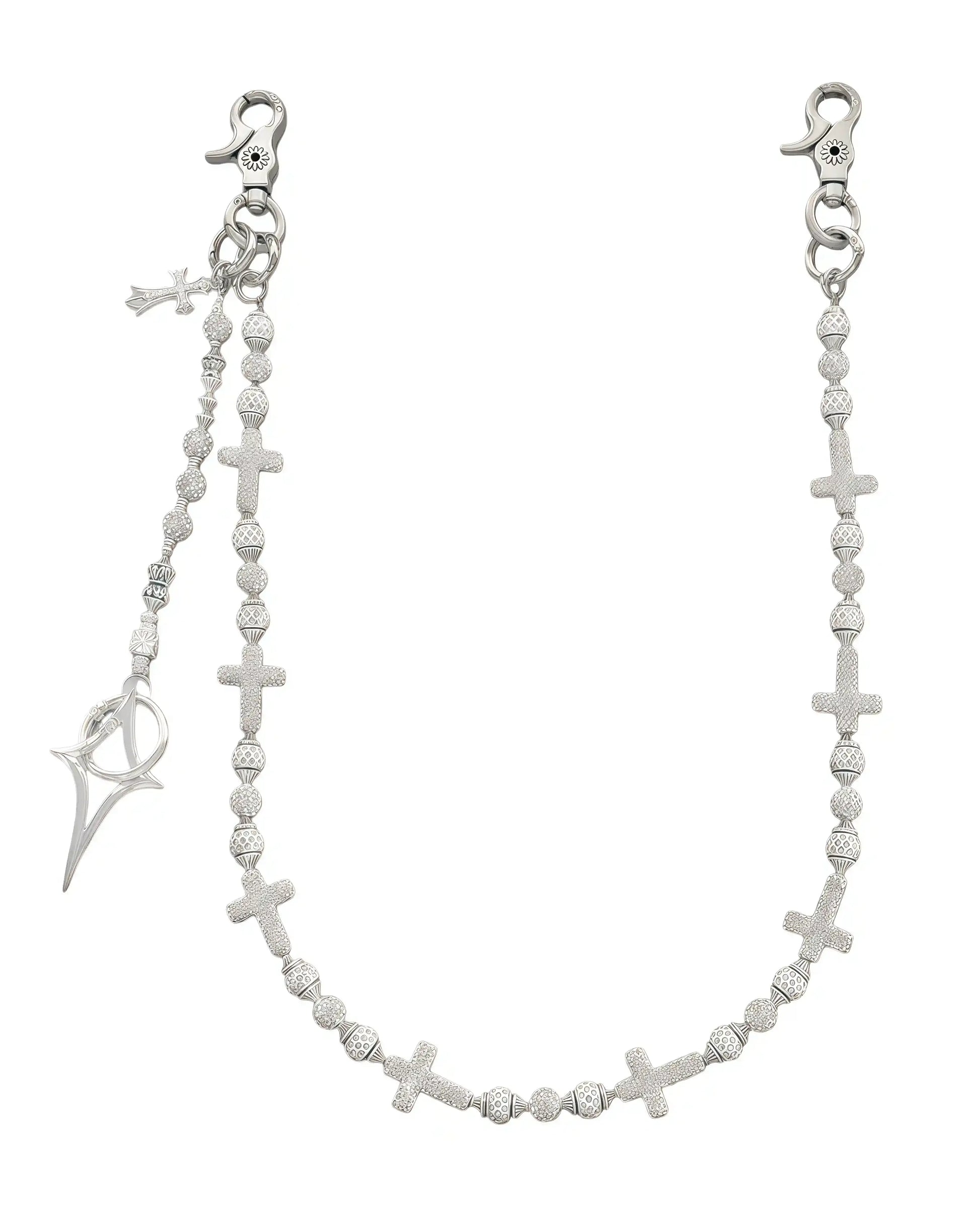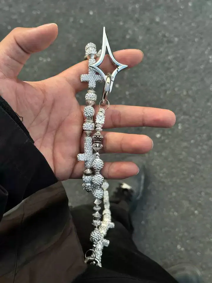 • Diamond-studded crosses and secure diamond balls, paired with titanium steel clasps that ensure both beauty and strength.