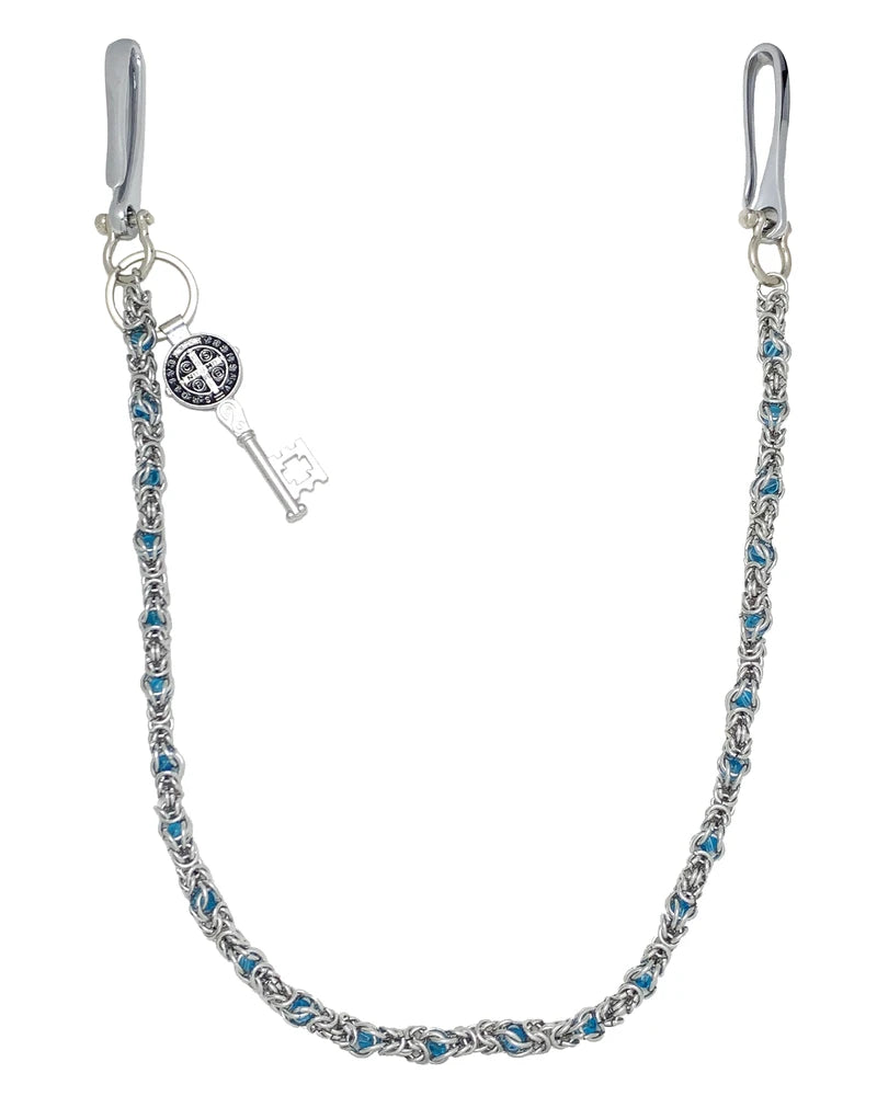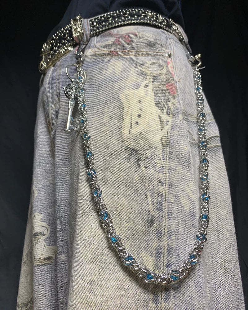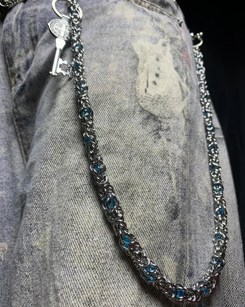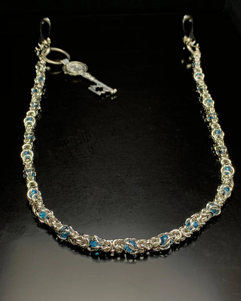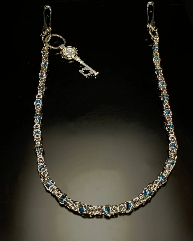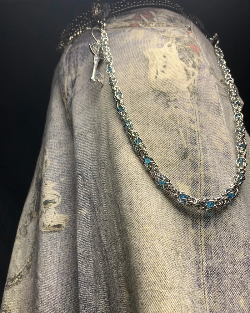 Silver loops laced in blood-blue—worn not to worship, but to warn.