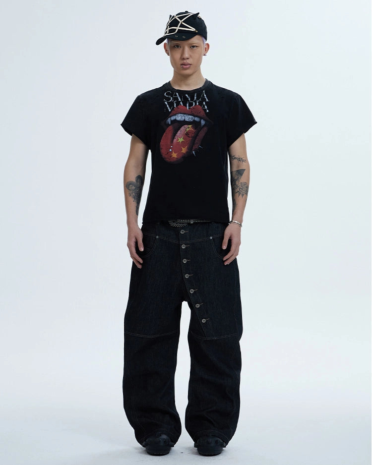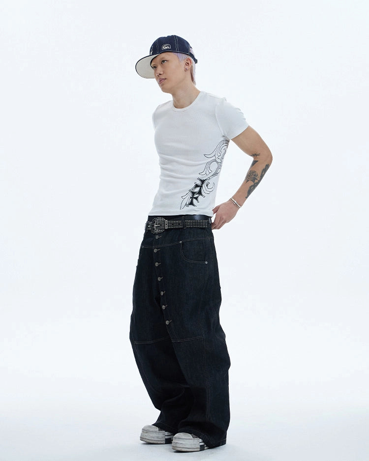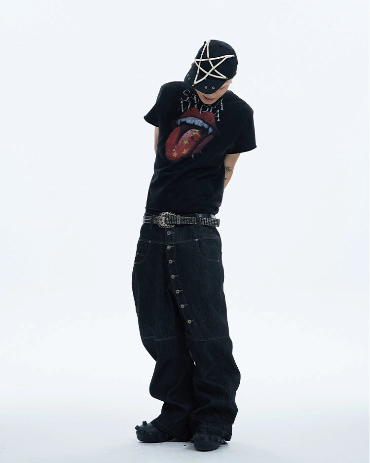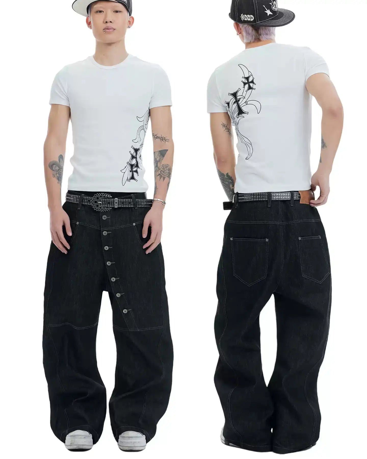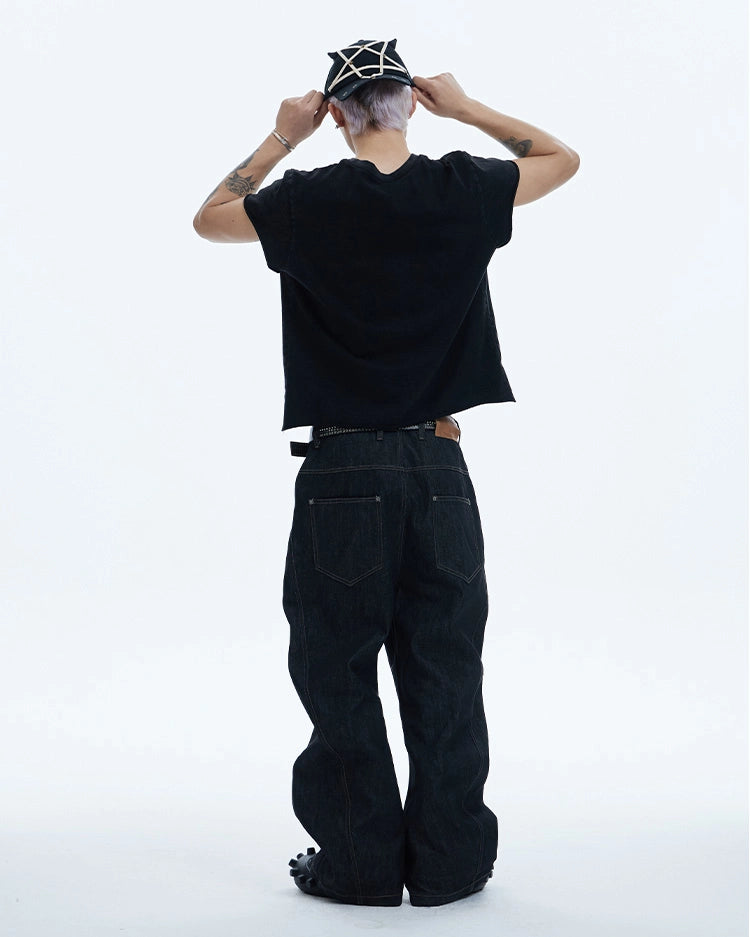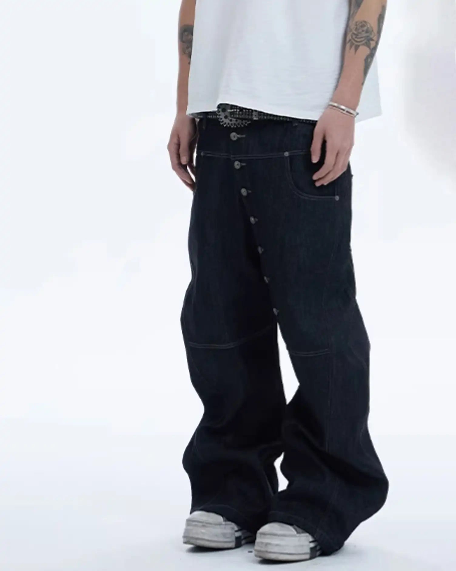- Crafted with premium raw denim, Slash Creed disrupts conventional silhouettes with an asymmetric blade-like cut and an exaggerated diagonal button fly.