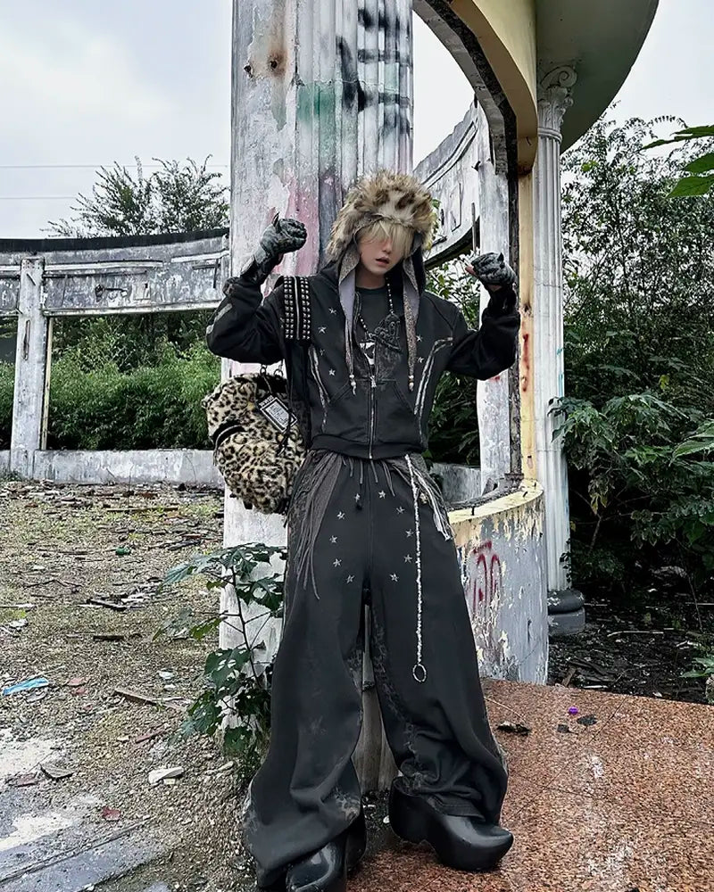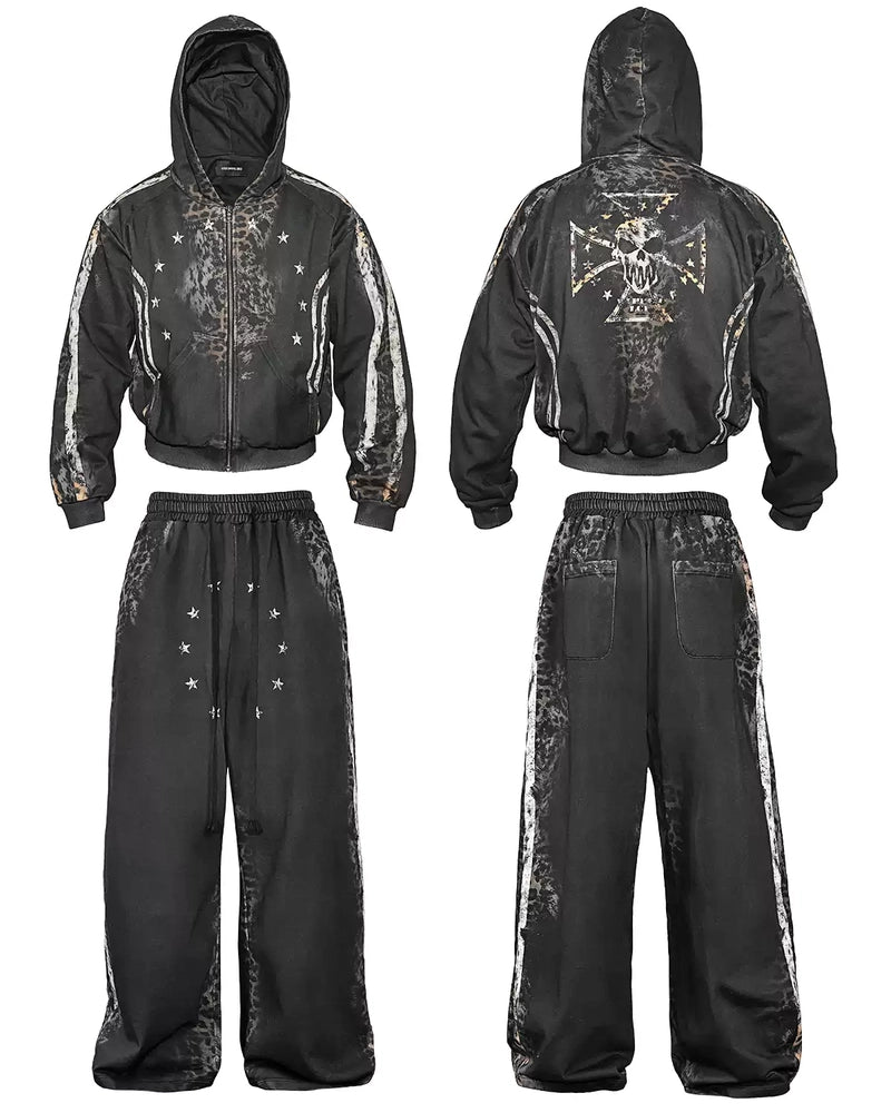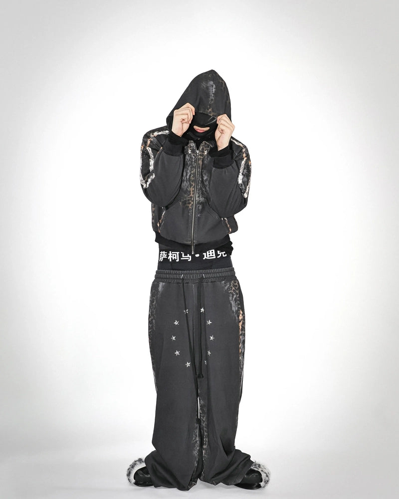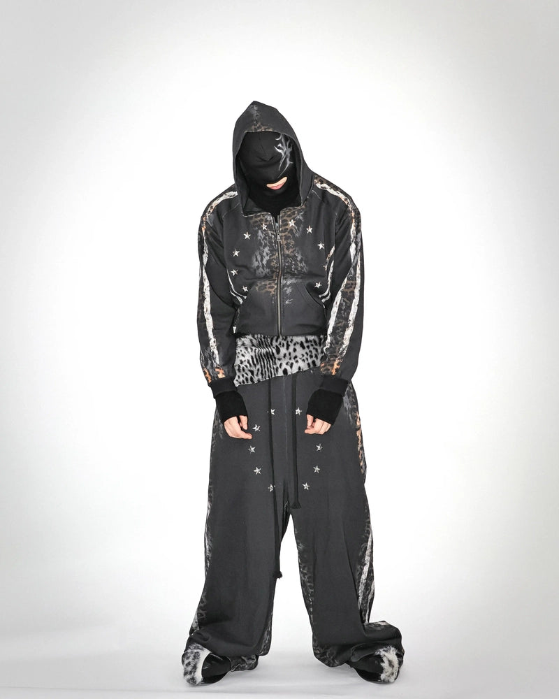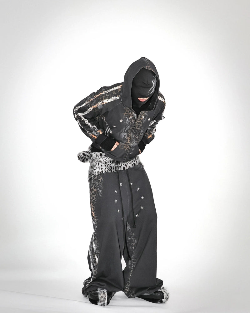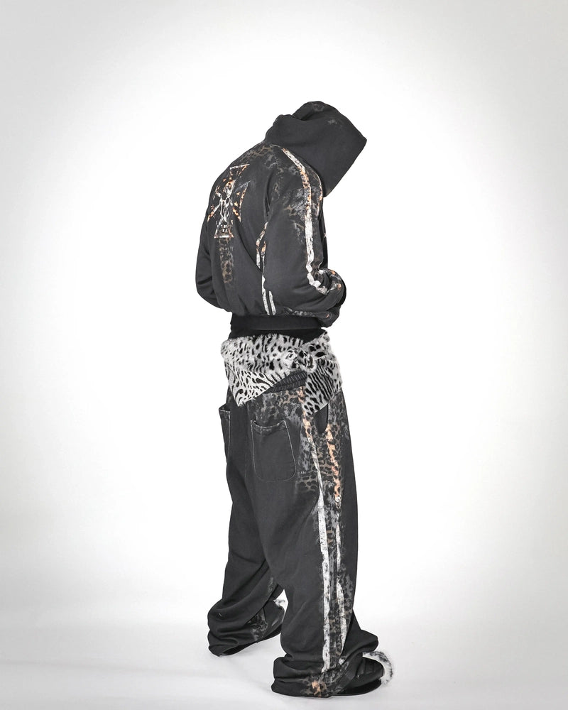 Blending the wild spirit of leopard print with a modern gradient shift and digital-stripe detailing. It’s streetwear attitude transformed into wearable art — bold yet refined, from gym-to-city.