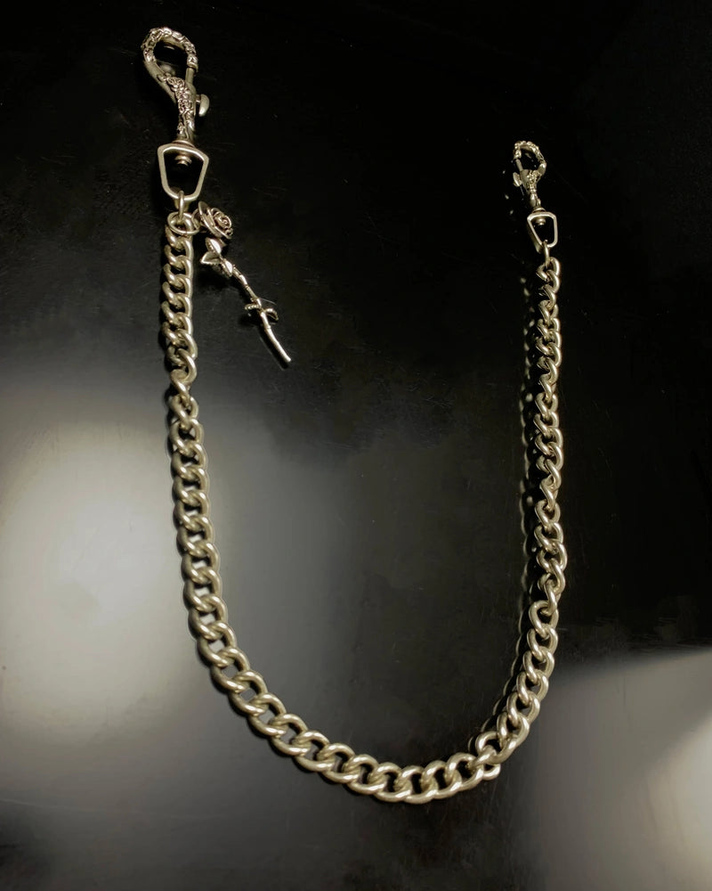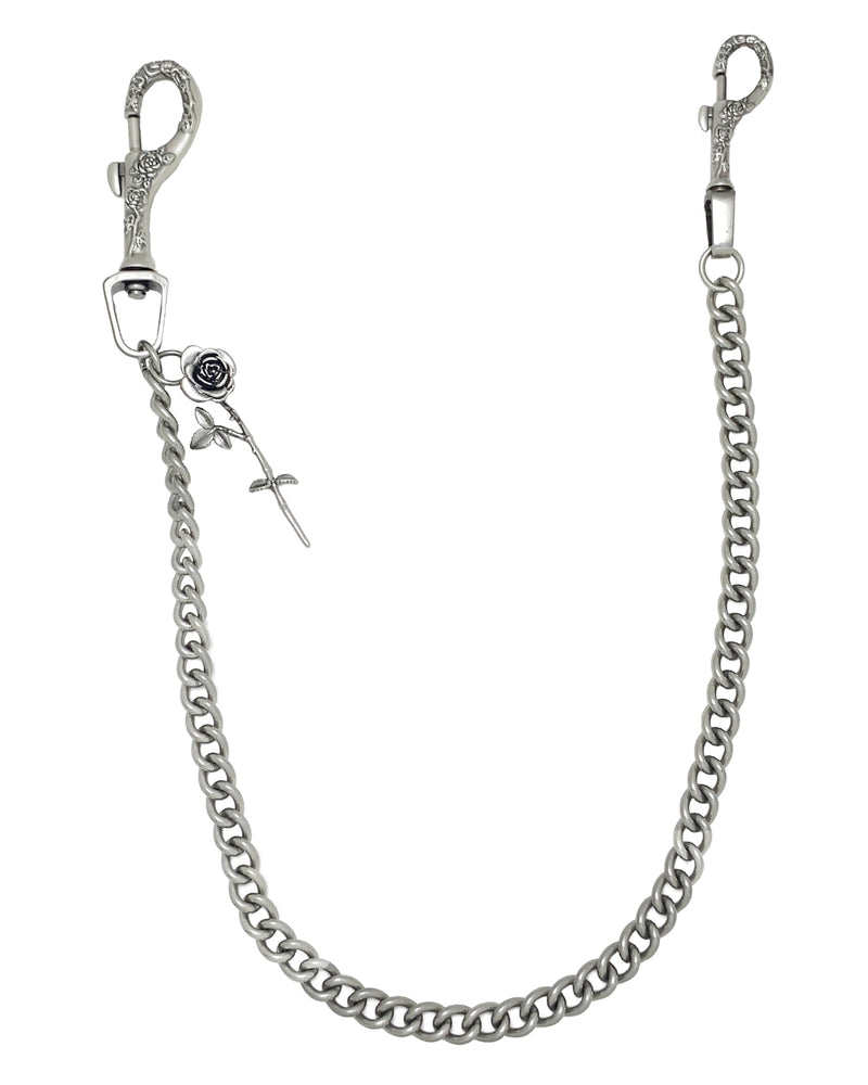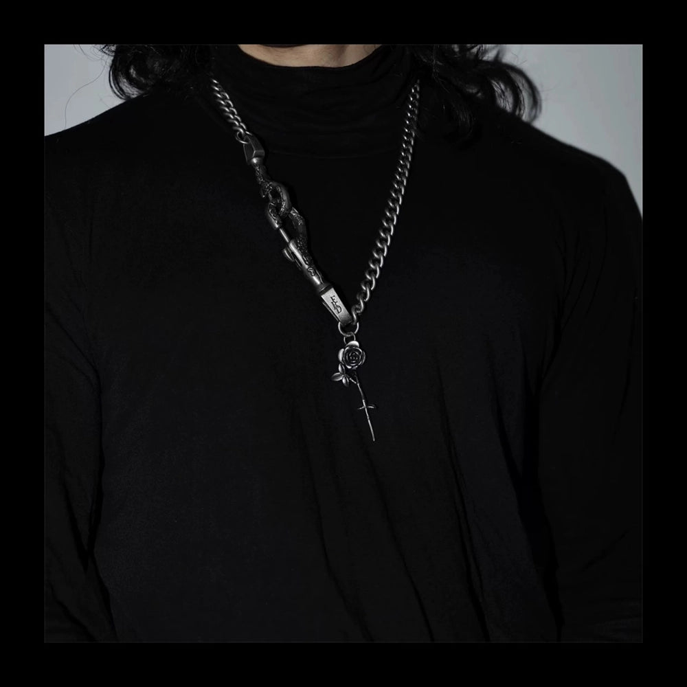 When dusk falls, wear your edge.A rugged chain. A single rose—sharp, defiant.